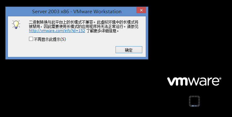 VMware 11 在 x64 电脑上使用,提示“二进制转换与此平台上的长模式不兼容。此虚拟环境中的长模式将被禁用,因此需要使用长模式的应用程序将无法正常运行。”