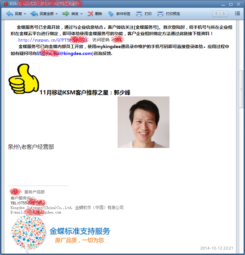 负责“金蝶软件、快普软件”的服务器维护、软件开发、使用指导;