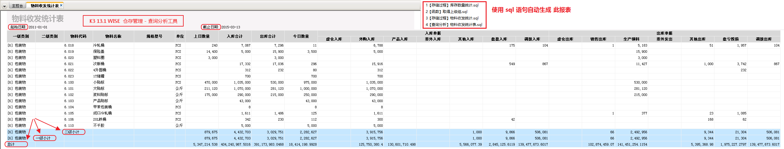 K3 WISE: 利国拉链项目 K3Cloud 云星空: 包材报表| 工艺委外加工单| 直接调拨单汇总表