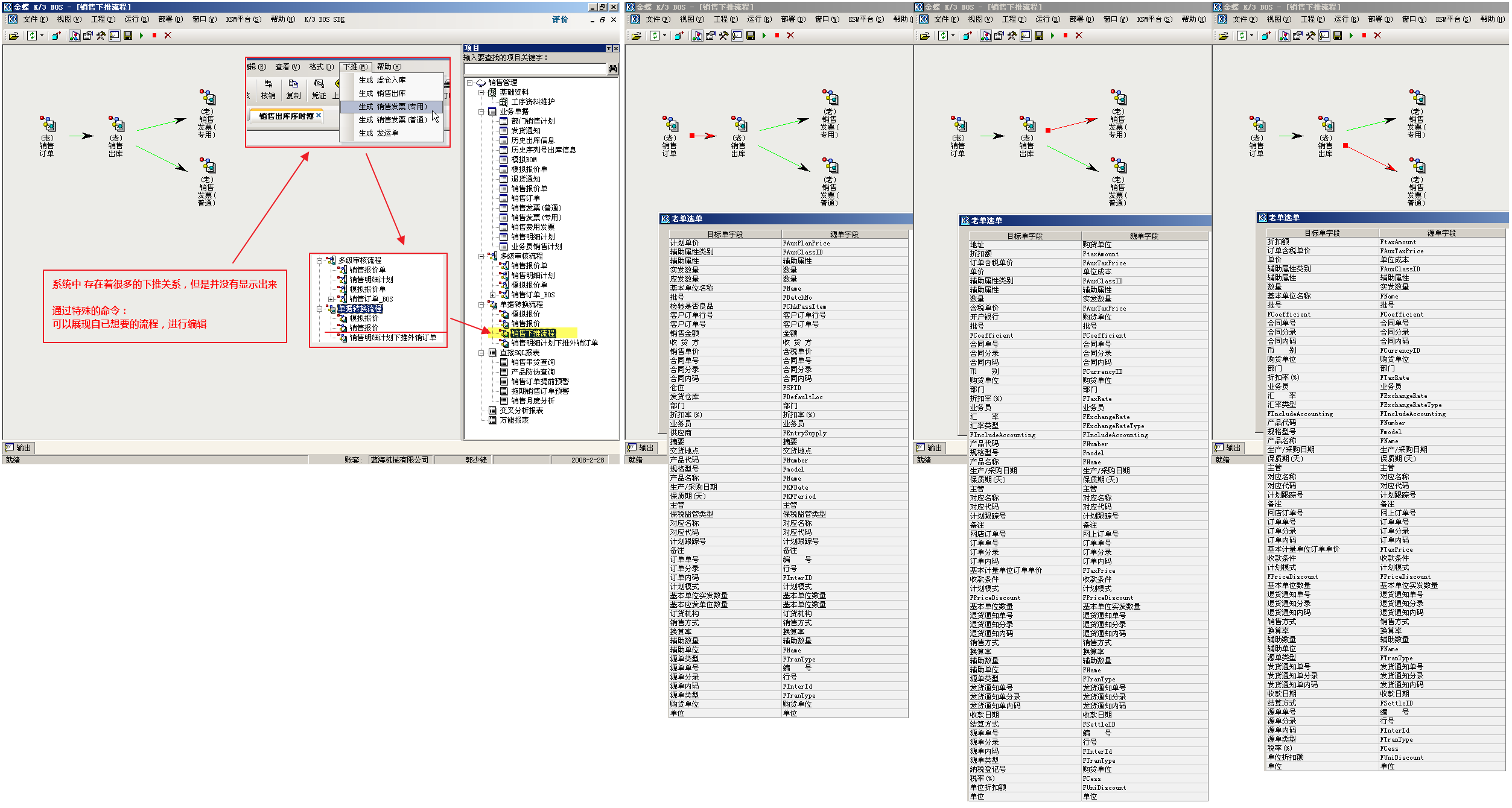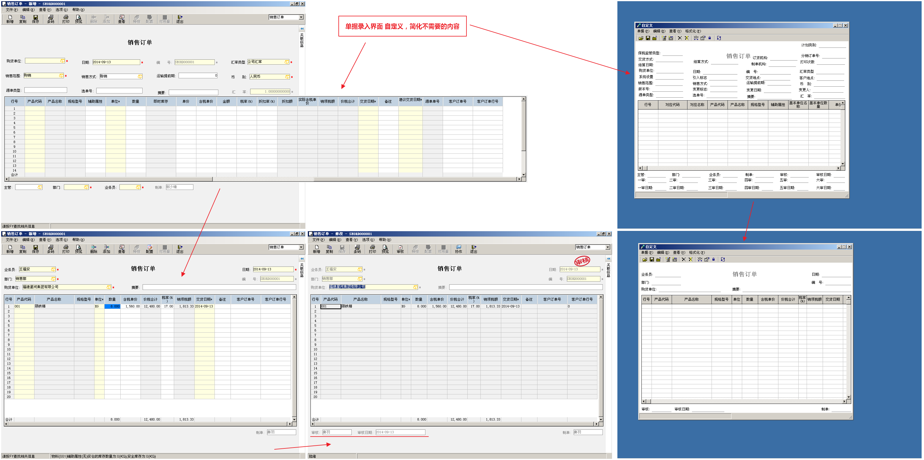 销售收款统计表| 超信用额度分析表单据自定义: 销售订单 界面简化 增加字段 单据转换流程: 销售下推流程 总账套打设计: 总分类账| 明细分类账