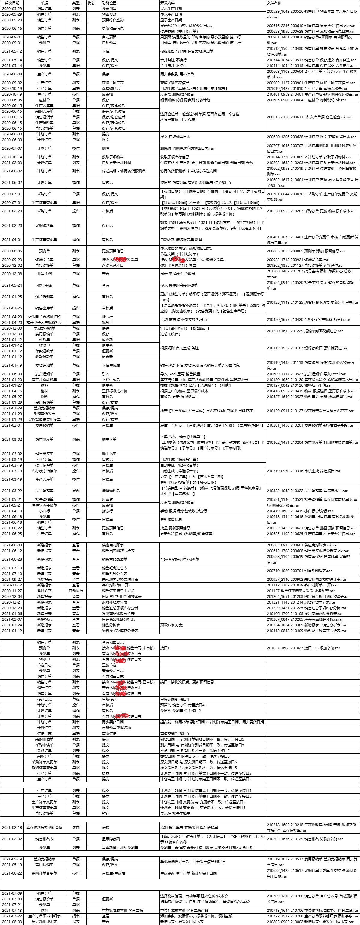 功能清单、 开发代码列表 - 利国拉链 K3 15.1 全套定制: