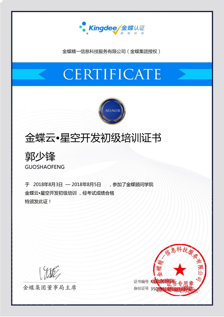 ERP软件: 精通 金蝶云星空、K3、KIS 编程语言: 精通 C#、VBA;熟悉 VB 数据库: 精通 SQL、Access;熟悉 MySQL - 软件应用能力